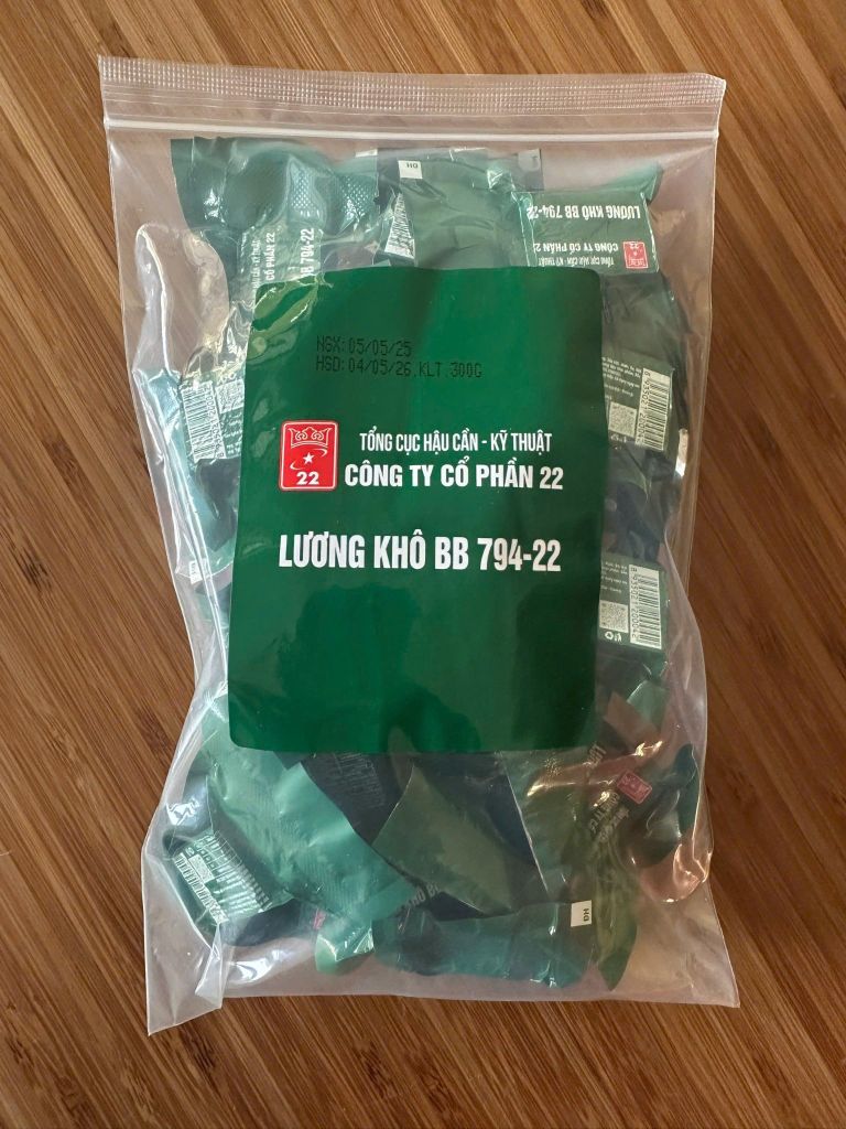 Lương khô đuộc đóng gói thành từng viên nhỏ, tiện sử dụng